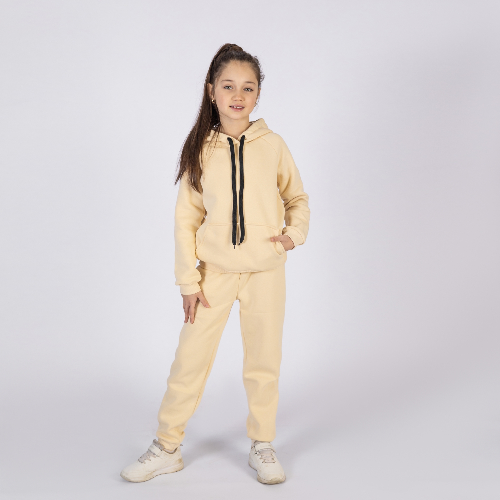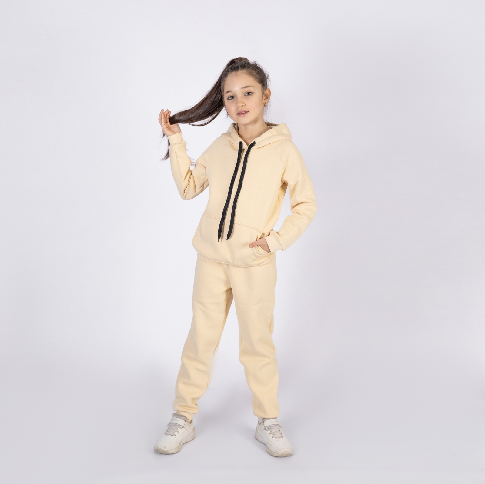 Купить оптом 296-СЛ. Свитшот с капюшоном + Штаны, хлопок 65%, 35% ПЭ, 3-х нитка (начес) сливочный 80,86,92 в Чебоксарах