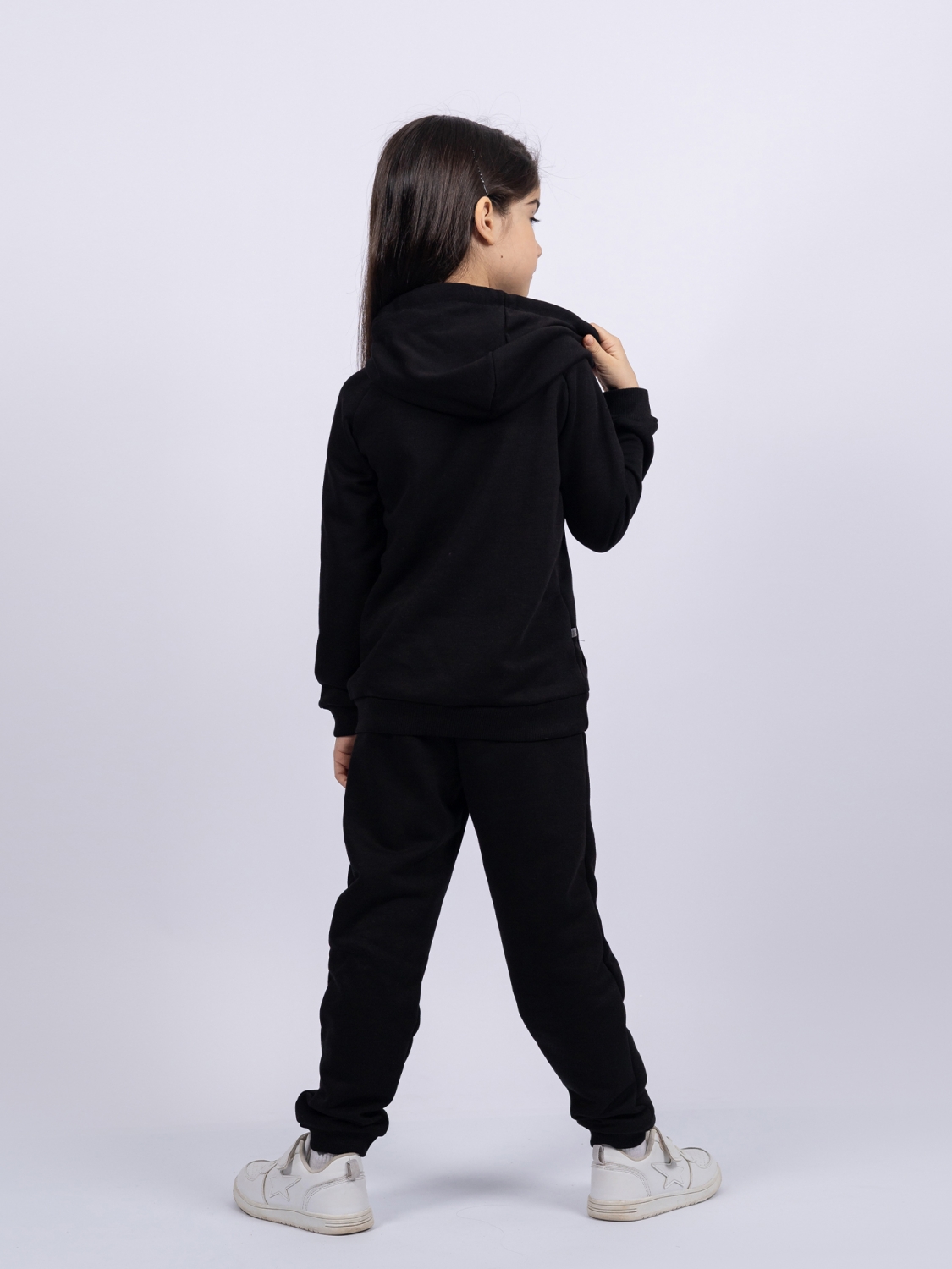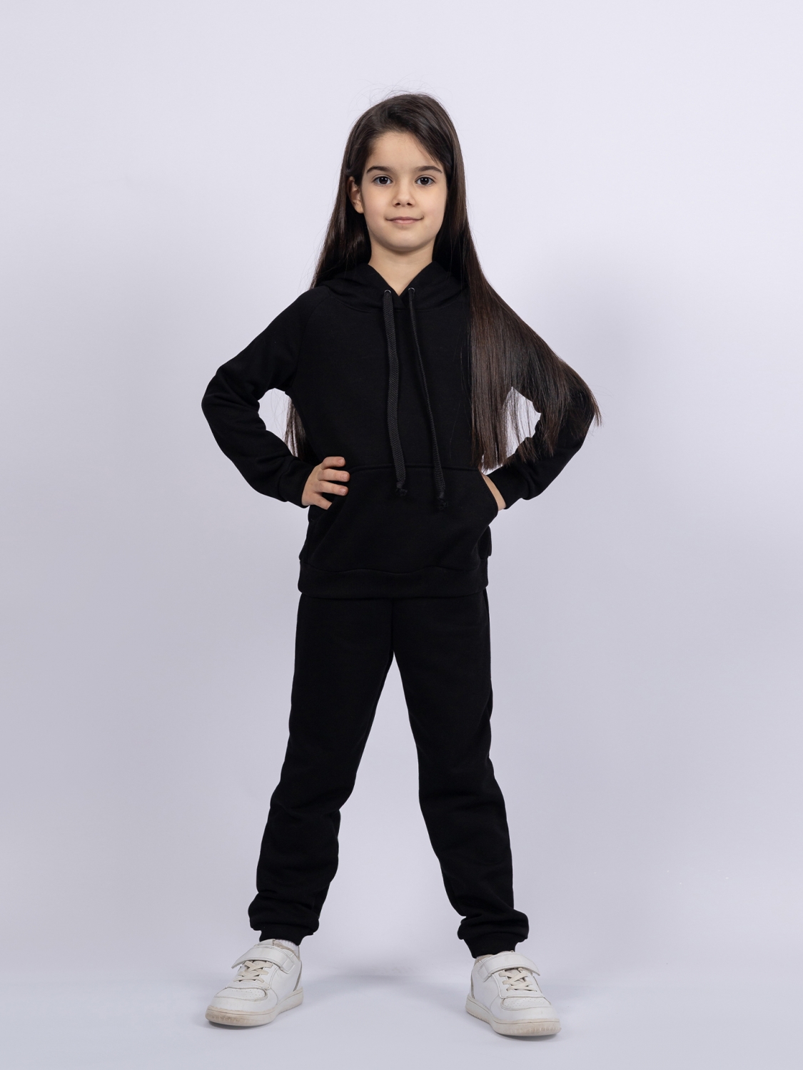 Купить оптом 311-Ч. Свитшот с капюшоном + Штаны, хлопок 65%, 35% ПЭ, 3-х нитка ( без начеса) черный 122,128,134,140 в Чебоксарах