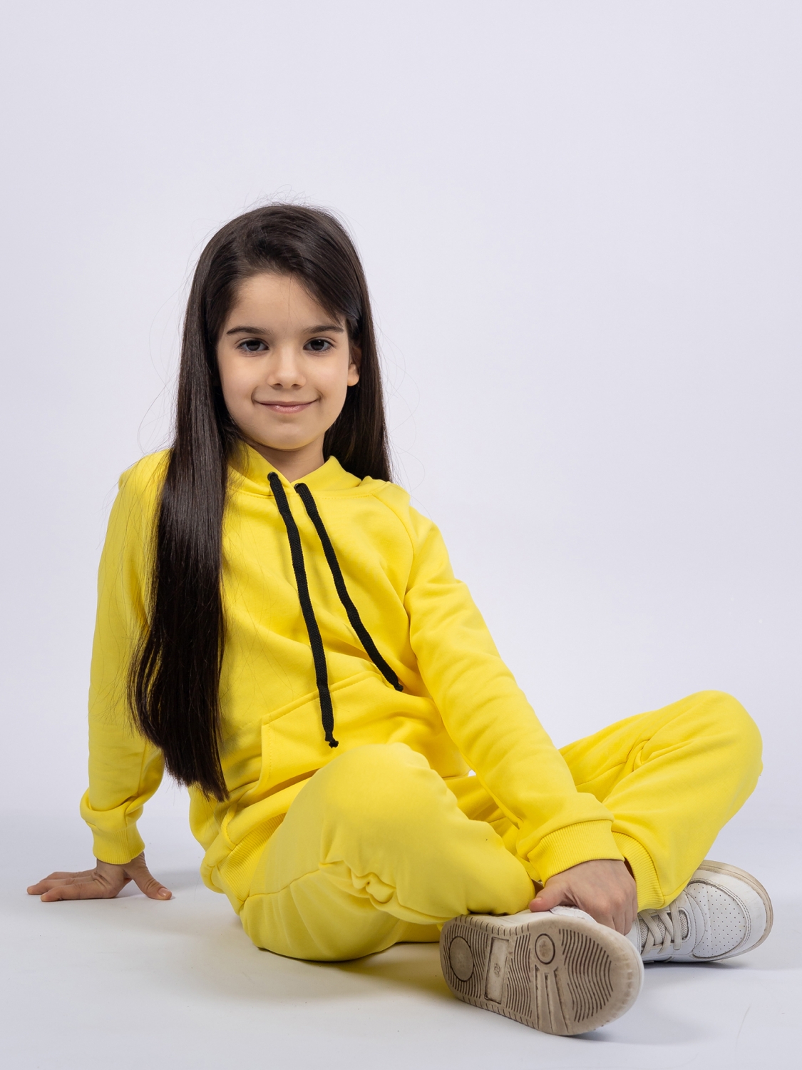 311-Ж. Свитшот с капюшоном + Штаны, хлопок 65%, 35% ПЭ, 3-х нитка ( без начеса) желтый 80,86,92
